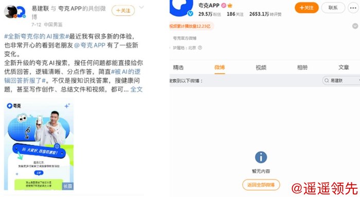 夸克、君乐宝、白象食品、珠江啤酒、HYPTEC昊铂、广发银行、OPPO、上汽通用、东阳光药等品牌的官方微博上,易建联的宣传内容也被删除殆尽。